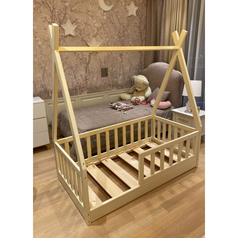 Детская кровать-домик Монтессори-Вигвам Долли односпальная из натуральной древесины (сосна).