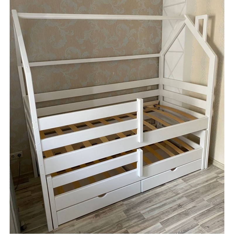 Детская двухъярусная выдвижная кровать-домик Виолетта с движным спальным местом.