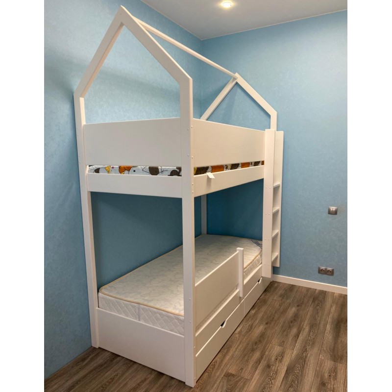 Кровать-домик двухъярусная детская Муза из натуральной древесины (сосна).
