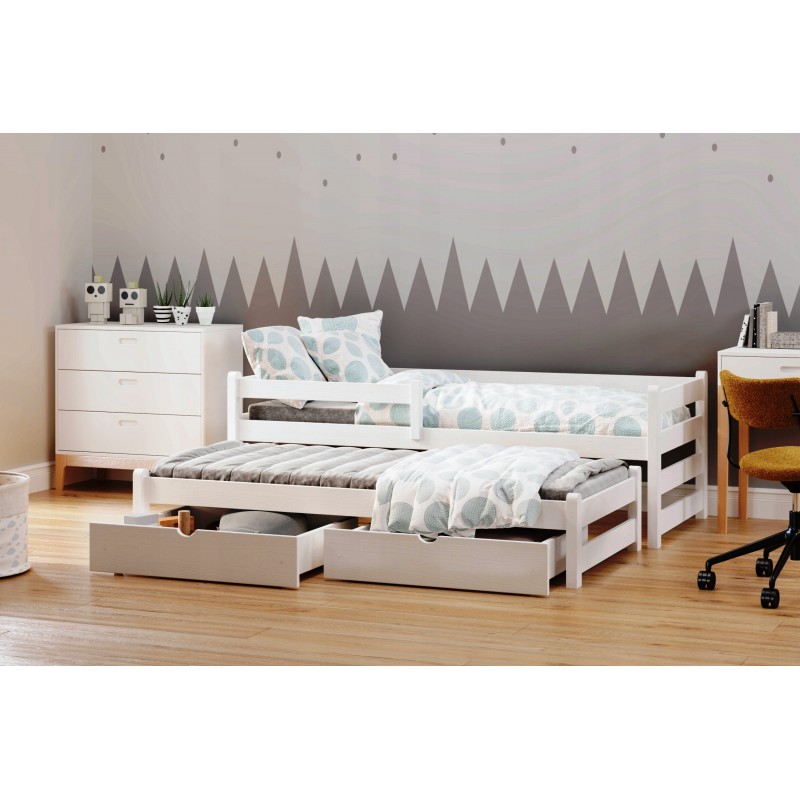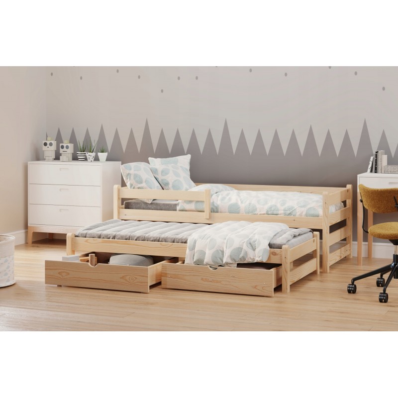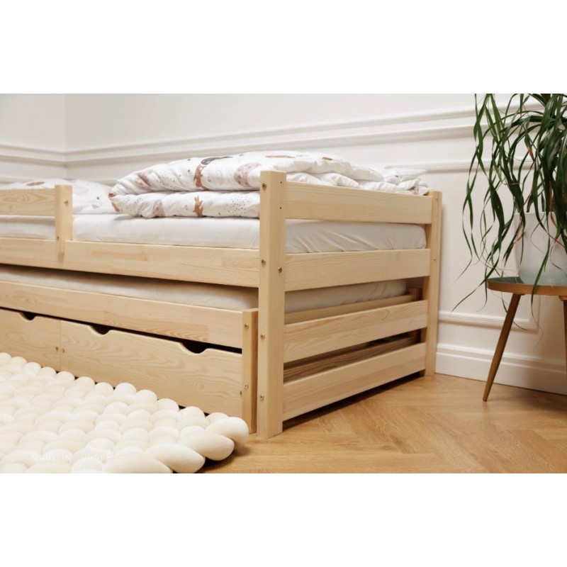 Поставляется в разобранном виде. Дополнительное спальное место полностью выполнено из массива, выкатывается на колесиках (укрепленных на задних ножках).