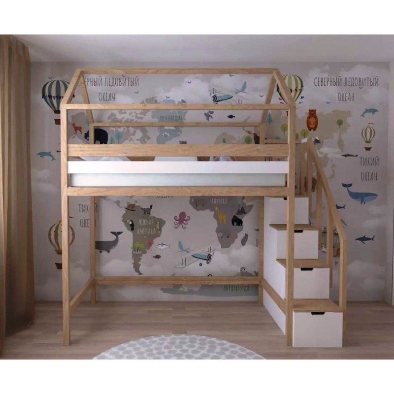 Теги: Чердак Домик, Кровать чердак, кровать чердак с лестницей, кровать чердак со ступенями, кровать домик