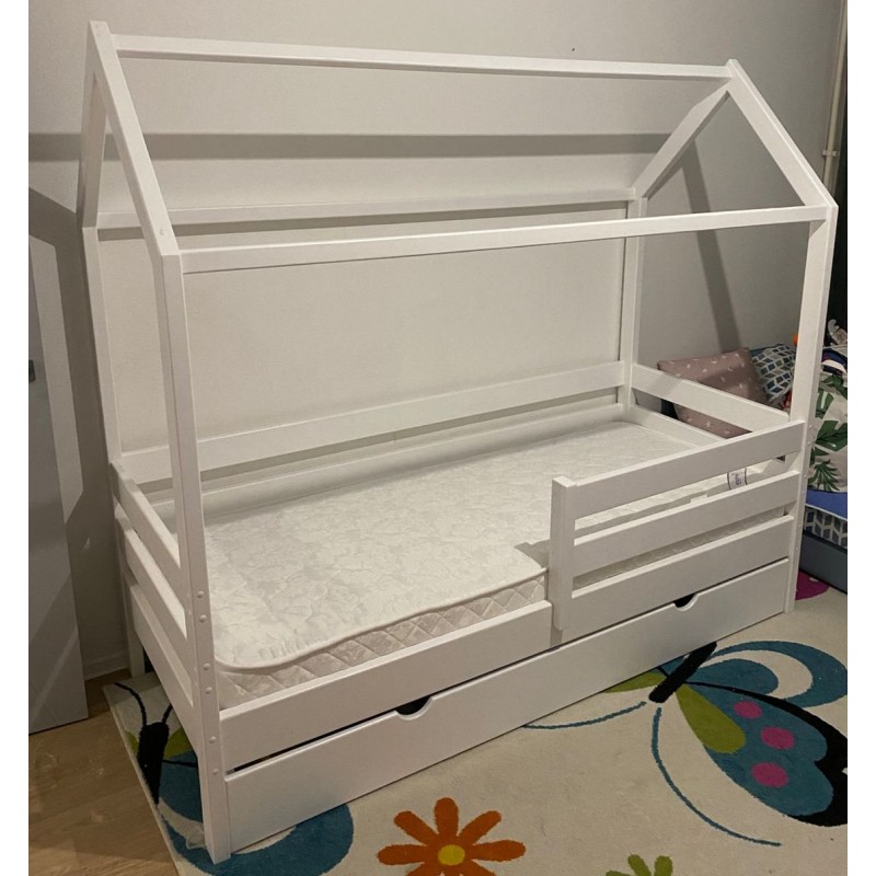 Детская кровать-домик Малыш односпальная из натуральной древесины (сосна).
