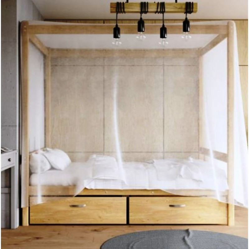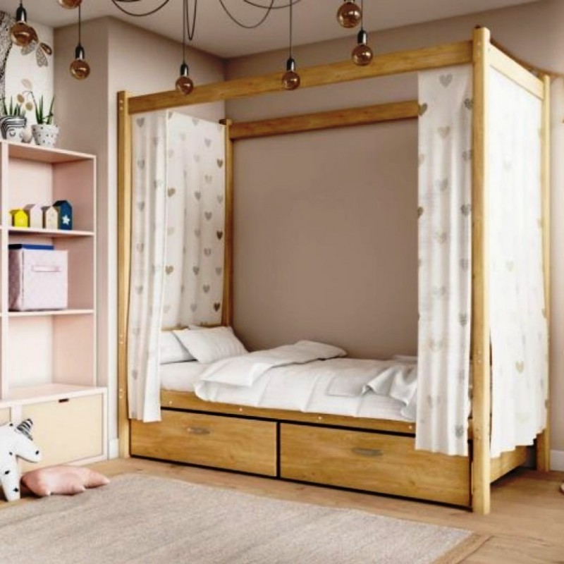 Кровать Кейт-2 с балдахином, односпальная из натуральной древесины (сосна).