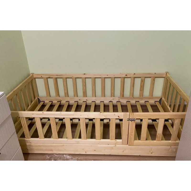 Кровать монтессори-манеж Микаса-4 с калиткой из натуральной древесины (сосна).